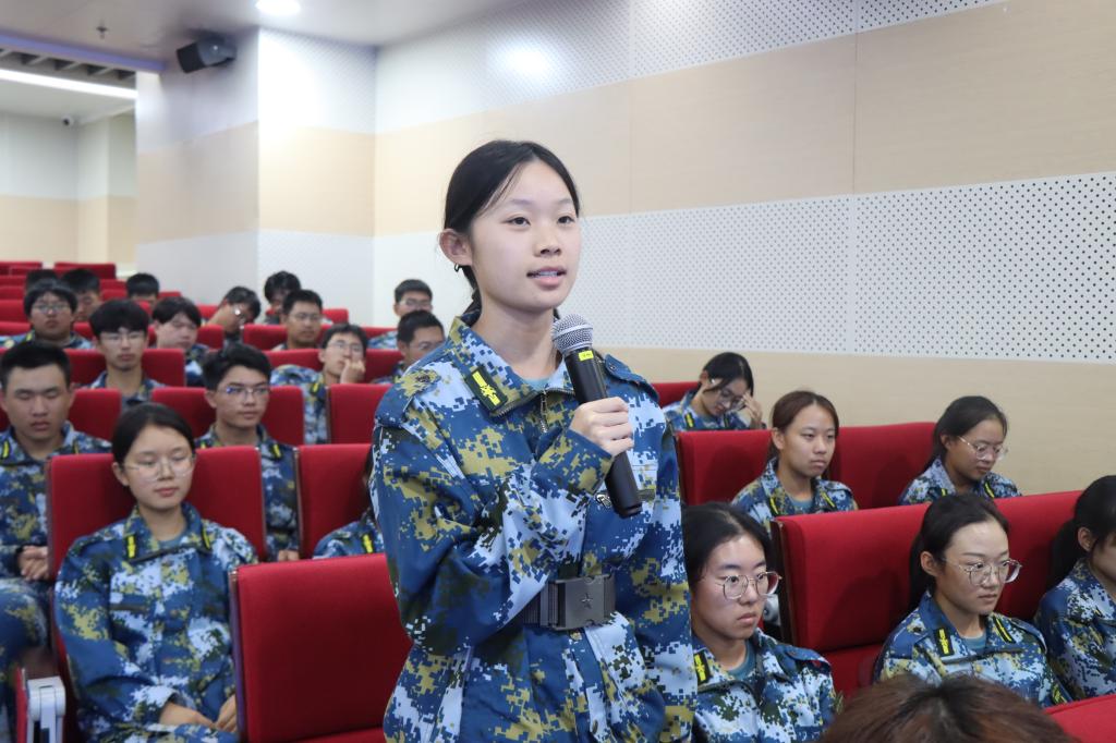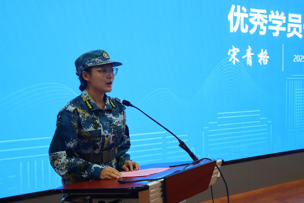 优秀学员代表、2025级数据科学与大数据技术专业的宋青格同学上台发言,分享了军训期间的成长与收获。她代表全体参训同学承诺,将军训中养成的良好习惯和优秀品质延续到今后的学习和生活中,努力成为有纪律、有理想、有道德、有文化的新时代大学生。(通讯员:葛天晨)