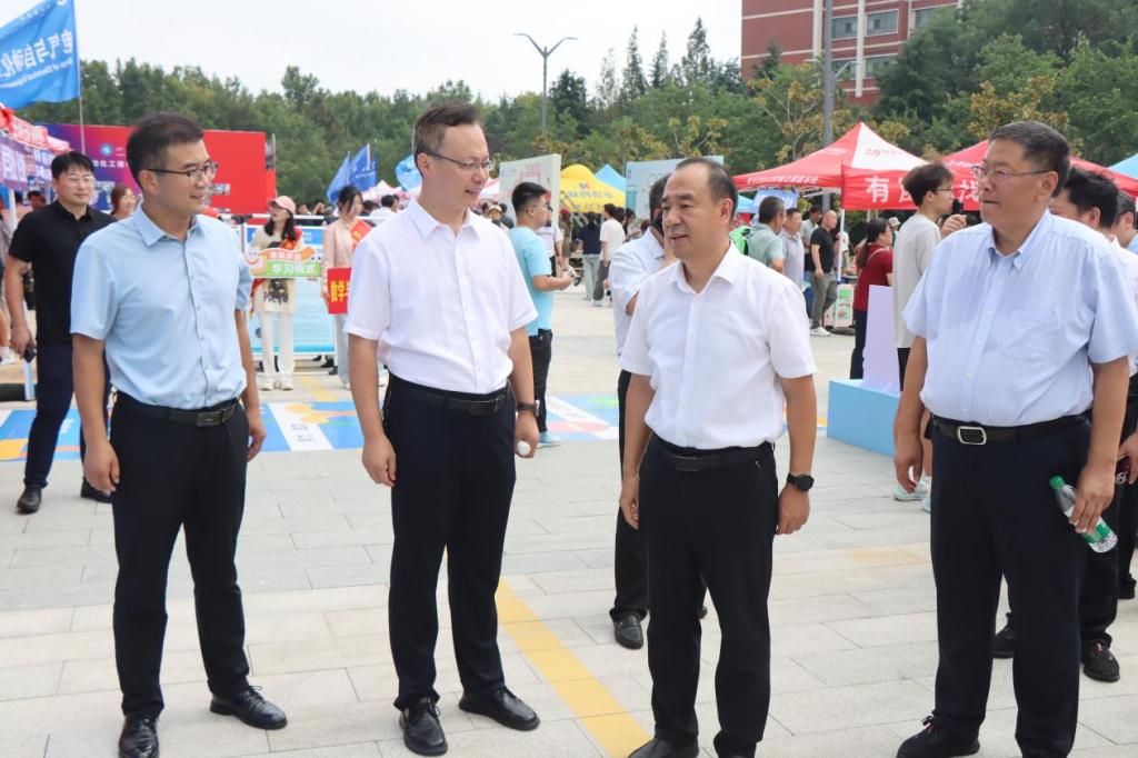 迎新期间,校党委书记王君松、校长曾庆田在相关职能部门负责人的陪同下来到学院新生报到现场查看迎新工作,询问各项工作进程,详细了解新生报到情况,对学院热情、高效的迎新流程及富有学院特色的迎新现场设计给予肯定。